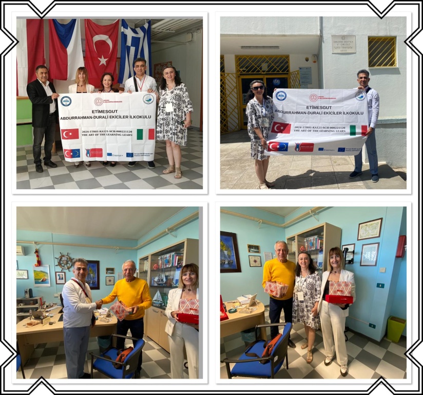 Abdurrahman-Durali Ekiciler İlkokulu olarak Ankara İl Milli Eğitim Müdürlüğü Erasmus +Okul Eğitimi Akreditasyonu Erasmus Learning Agrement Project code: 2024-1-TR01-KA121-SCH 000221120 kapsamında Aslıhan Gürbüz öğretmenimizin yazdığı ‘ The Art Of The Learning Learn’ adlı projeleriyle Müdürümüz Remzi Demir ve Aslıhan Gürbüz öğretmeniz İtalya'nın Lecce şehrinde I.C."TEMPESTA-GALATEO" isimli okulda 12 Mayıs-15 Mayıs tarihleri arasında işbaşı gözlem faaliyetini gerçekleştirmiştir