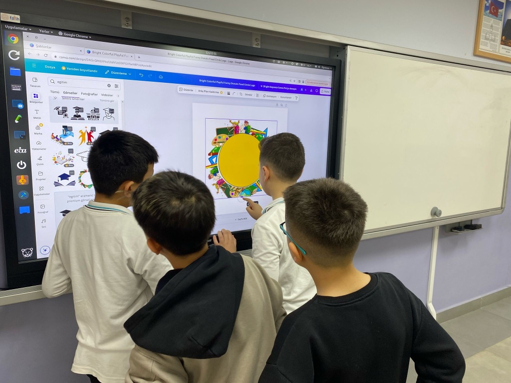 Okulumuz öğretmenlerinden Aslıhan Gürbüz 4/B sınıfı öğrencileri ile birlikte Canva programını kullarak Game-Based Approaches for Inclusive Classrooms isimli projeleri için logolar tasarlamıştır.