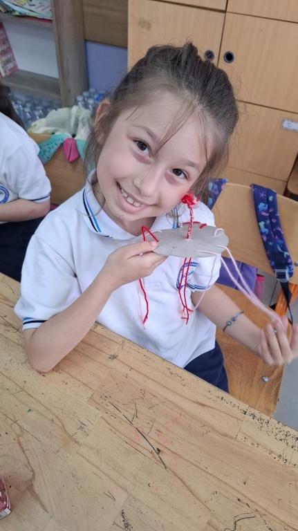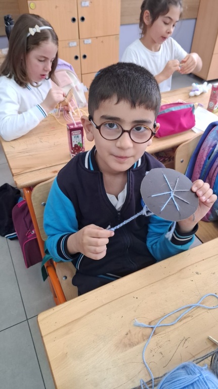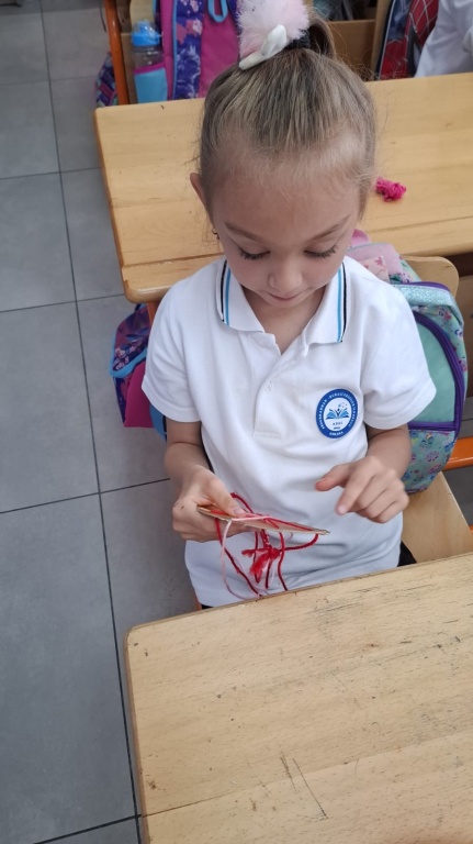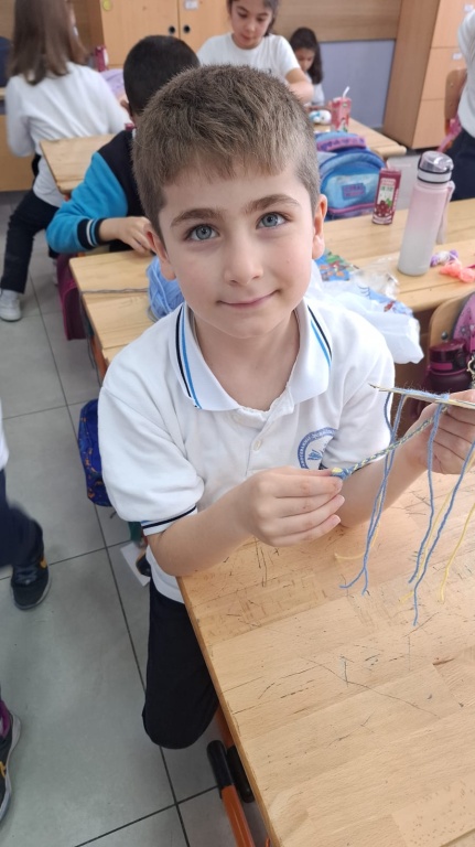 Birinci sınıf öğrencilerimiz, becerilerini geliştiriyorlar. Kendi bilekliklerini kendileri ördüler.